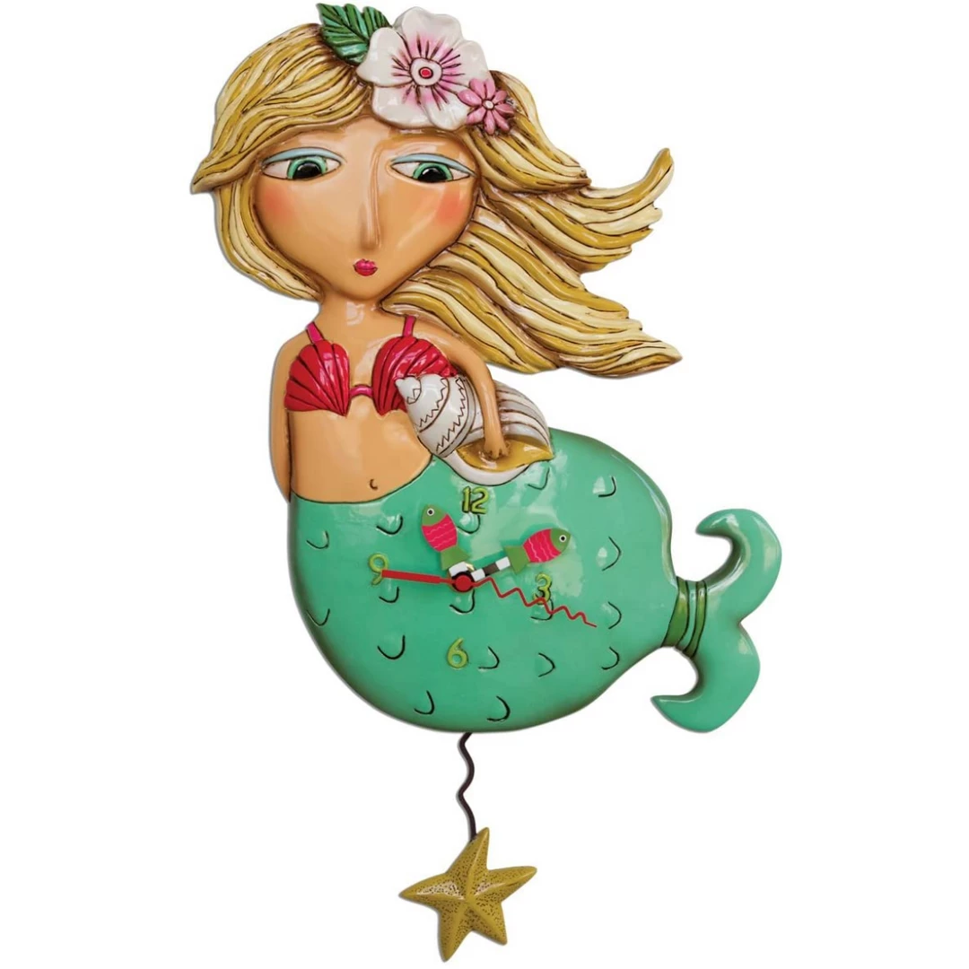 - Hand painted Mermaid “Shelley Mermaid” Pendulum Clock with fish hands