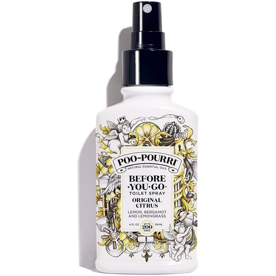 - Spritz the bowl before-you-go and no one else will ever know; our most popular scent! When life gives you lemons, give ’em right back! Poo~Pourri Original Citrus is an uplifting blend of lemon, bergamot and lemongrass natural essential oils.