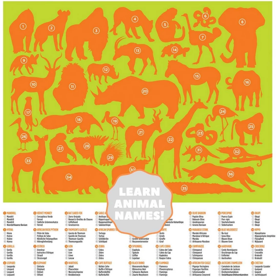 - Comes with naming sheet for each animal featured each animal is listed in 4 different languages