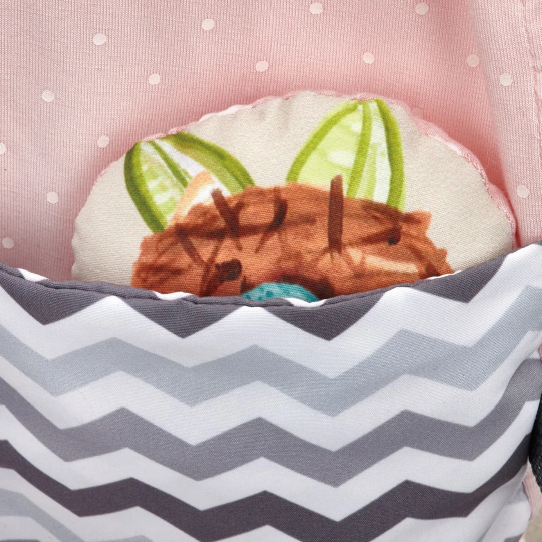 The Mommy & Me Activity Collection surrounds baby with comfort, love and engagement. Various textures provide sensory experiences to promote happy and engaged babies. This scarf promotes together time between parent and child. These items foster emotional well-being and brain development for baby. Our unique and lightweight Activity Scarf hangs around mom’s neck while keeping baby happy and entertained. Includes built-in rattle, squeak toy, pocket and various textures. Includes a special sewn in “love note” on the label.
