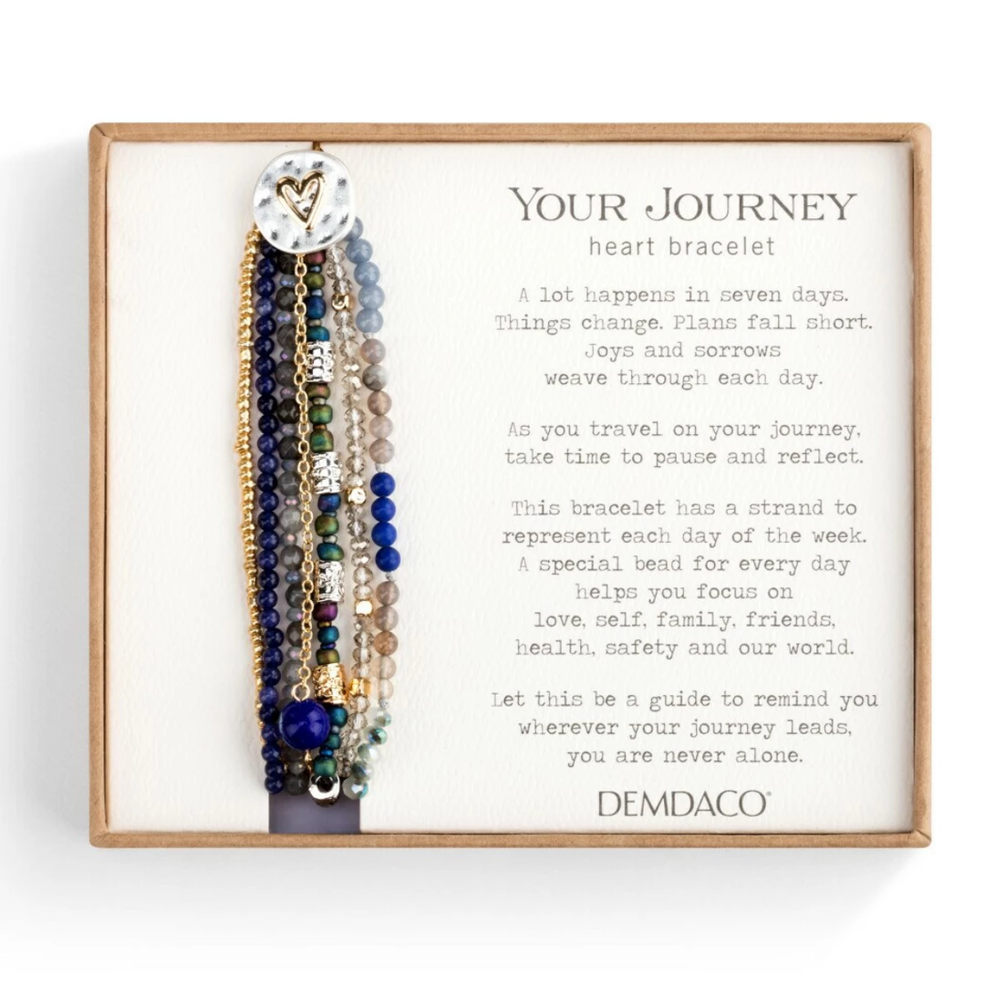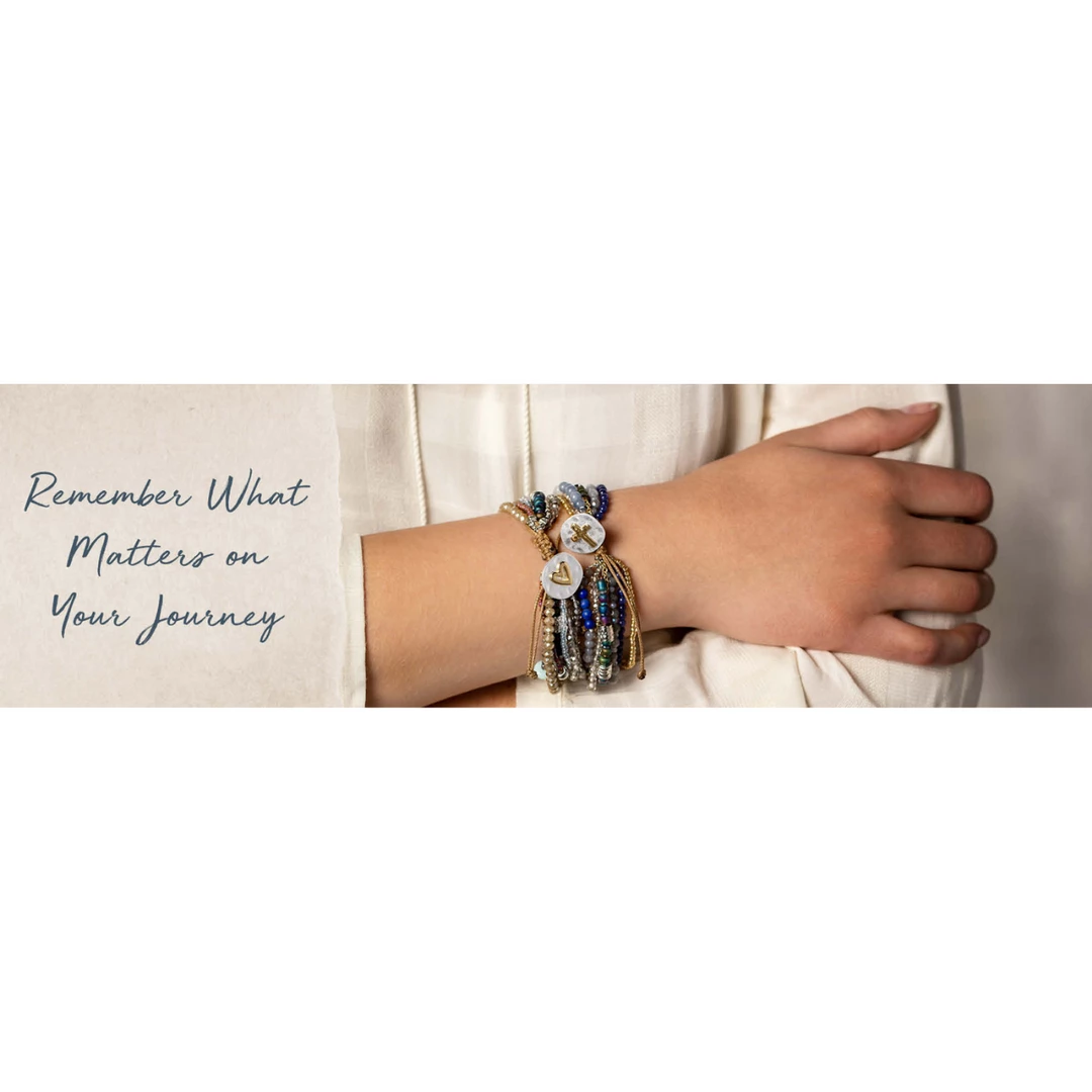The collection features handcrafted artisan bracelets that encourage intentional living and quality time spent in prayer. Now more durable and featuring stronger materials. Makes the perfect everyday piece, consisting of pearls, gemstones and glass beads. The Indigo Your Journey Prayer bracelet features seven unique strands representing the days of the week and prayer beads symbolizing God, family, friends, health, safety, our world and special requests. Makes a perfect gift for loved ones as an inspirational or motivational piece. An adjustable band features a unique pull out style that allows it to fit most wrists. Stunning details and artisan design set this bracelet apart. DEMDACO Indigo Your Journey Prayer Bracelet by Journey Collection. Made of glass, plastic, freshwater pearl, copper and zinc alloy. Adjustable and fits wrist sized 6″-10″. Measures 3″ dia.