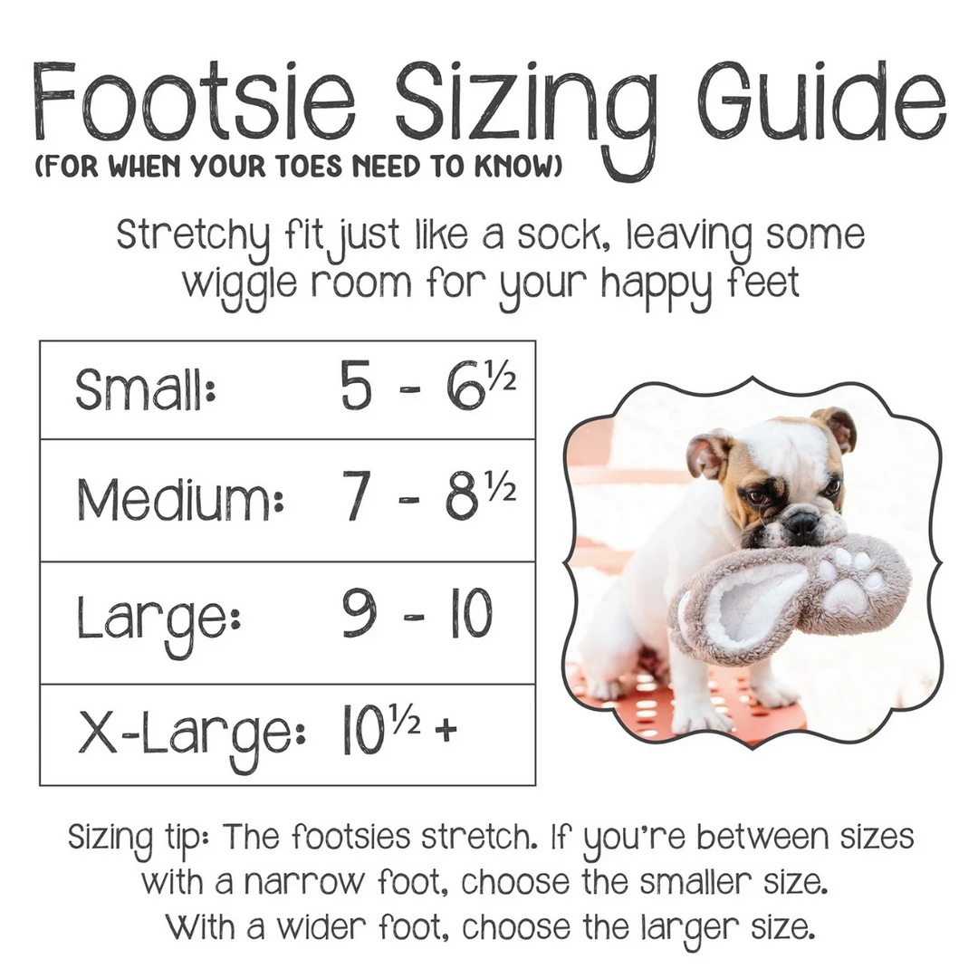 FABRIC: 100% polyester is plush and cozy with decorative anti-skid pads on the soles. Perfect for indoor relaxing. Warning: Prolonged exposure to footsie sole may damage some leather and wood furniture finishes.