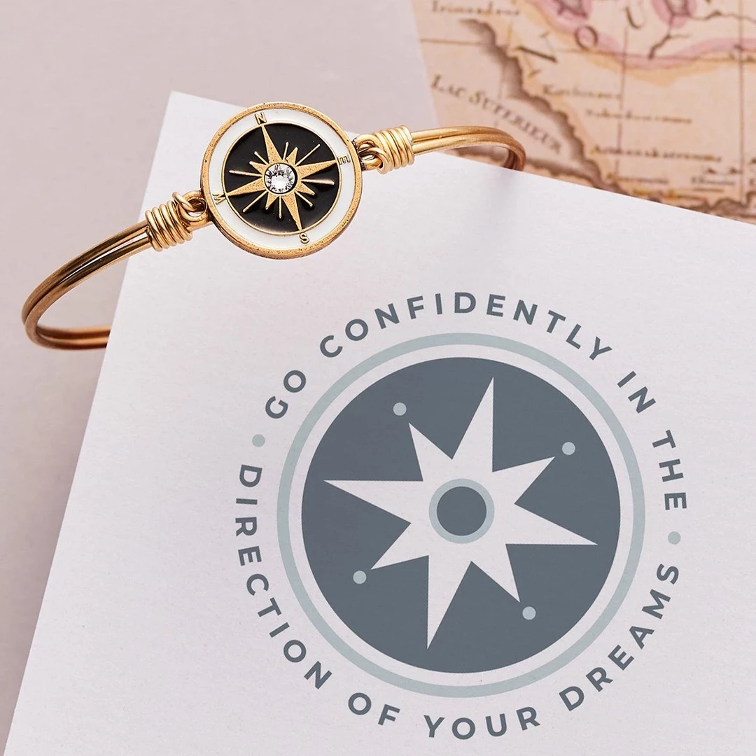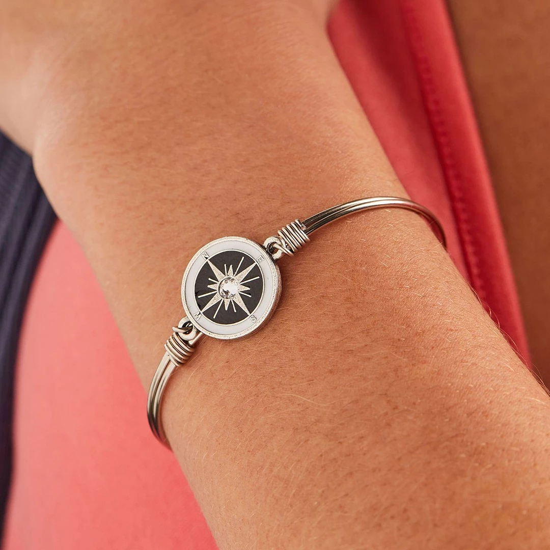 - Enamel compass charm + crystal accent