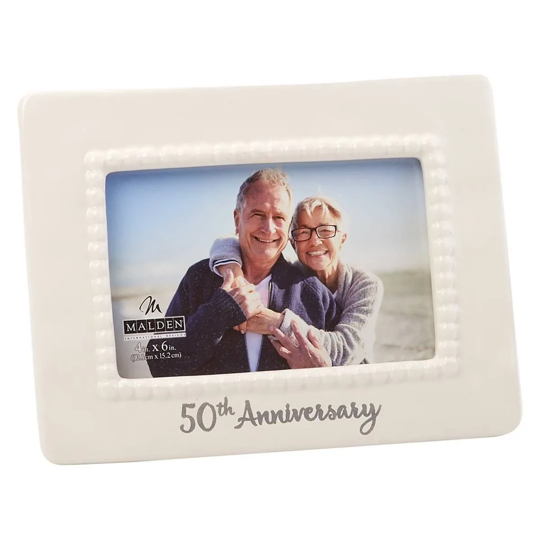 Celebrate this monumental day with the Malden 50th anniversary beaded ceramic frame. It adds a soft touch to any decor.