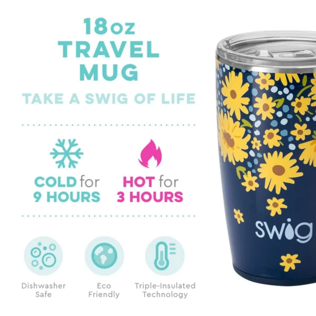 Hello, sunshine! Whimsical flowers and baby blue details bounce across the deep, navy hue of Lazy Daisy. Thanks to our triple insulation technology, our best selling travel mug with handle keeps drinks cold up to 9 hours and hot up to 3 hours. The cup holder friendly shape makes it the perfect travel companion, to and from the classroom, the conference room or even just your living room!