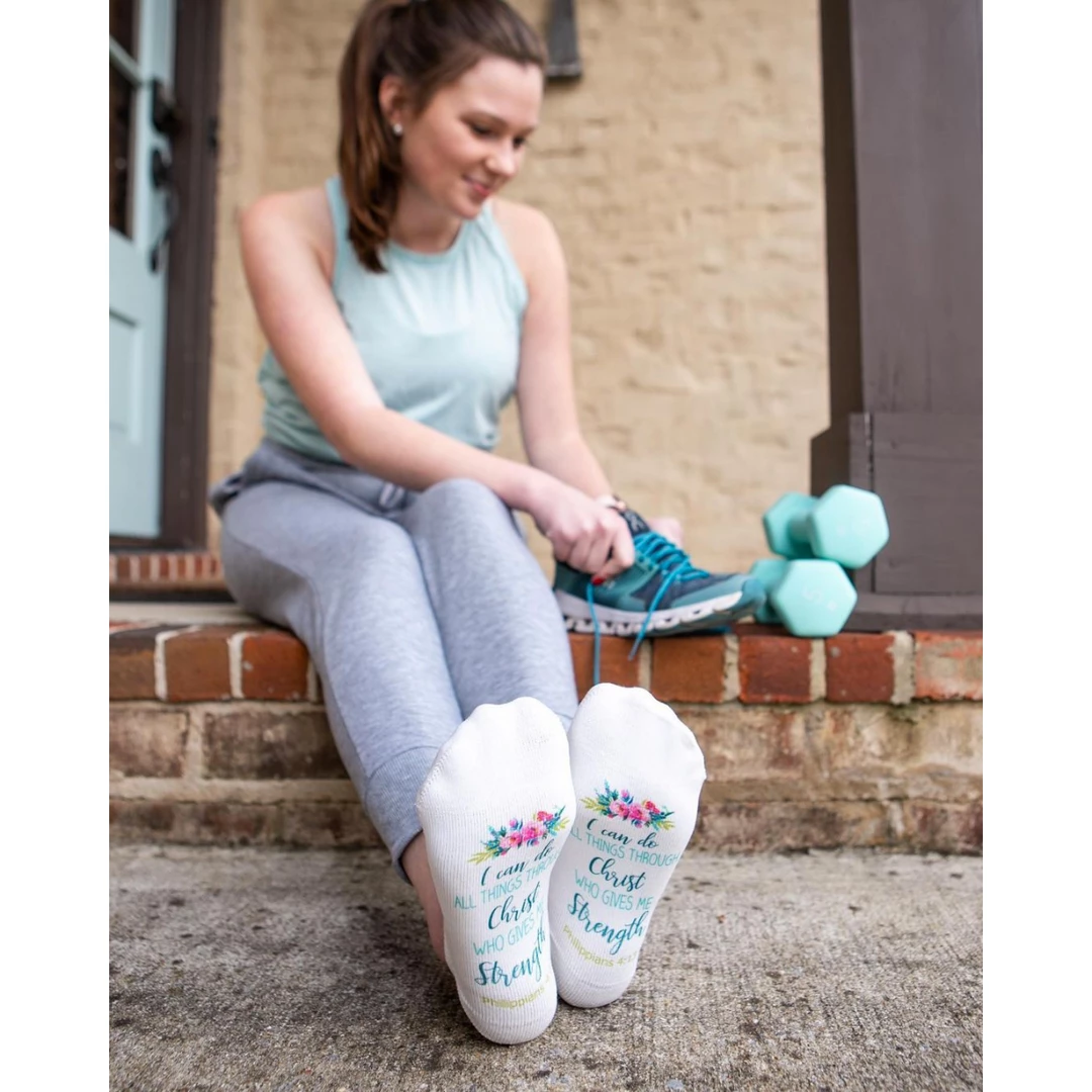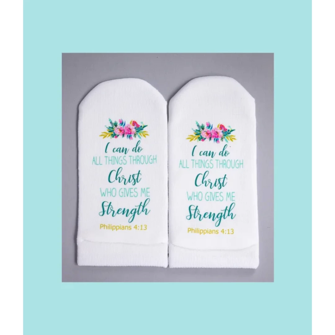 Flower design with Standing on the Word verse on the sole Philippians 4:13   I can do all things through Christ who strengthens me