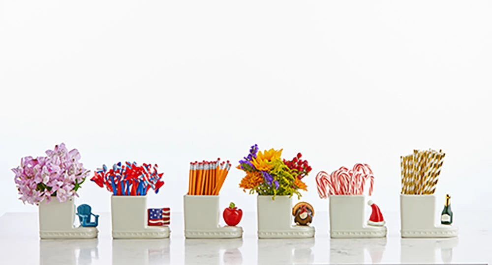 - This Nora Fleming square container has numerous uses – candy, flowers, straws, utensils, and pencils are just a few ideas!