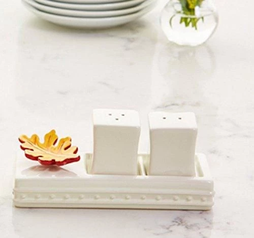 This elegant salt and pepper shaker set is sure to bring lots of flavor to dinners at home or get-togethers with the ones you love. Includes salt shaker, pepper shaker, and storage base with space for a mini ornament