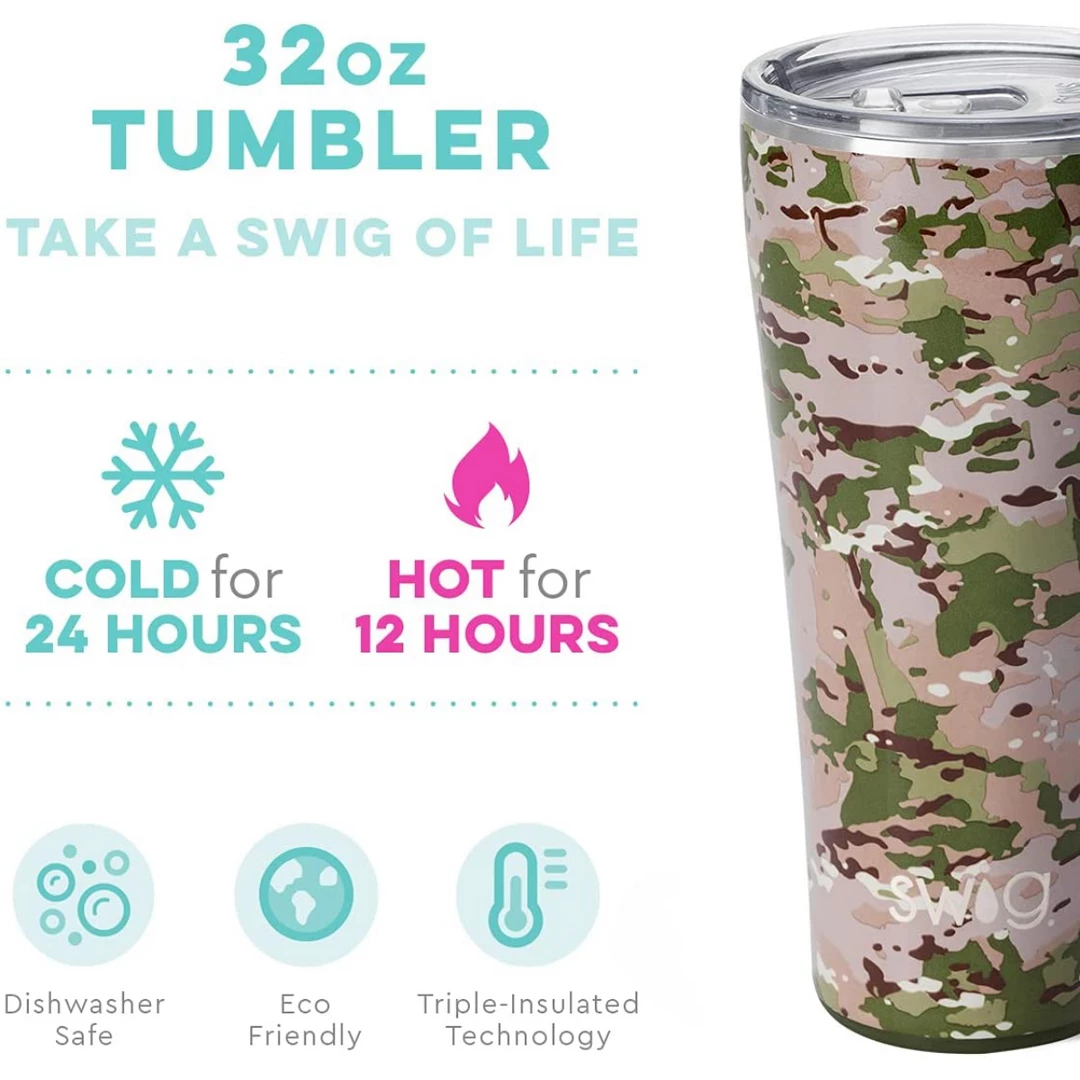 Earth tones of green, tan, and brown make for a heavy-duty design ready for any challenge. Empty heading Our best-selling tumbler now comes in a NEW larger size! This larger version still features a slim profile, making it cup holder friendly and comfy to hold. The increased capacity means you get to enjoy more of your favorite drinks with fewer refills! Thanks to our triple insulation technology, our best selling tumbler keeps drinks cold up to 24 hours and hot up to 12 hours. The cup holder friendly shape makes it the perfect travel companion, to and from the classroom, the conference room or even just your living room!